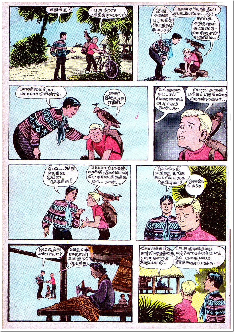 | தமிழ் இந்திரஜால் காமிக்ஸ் - புஸ் சாயர்- முத்து காமிக்ஸ் சார்லி - ராஜாளி ராஜாப்பயல் - பக்கம் 9 |